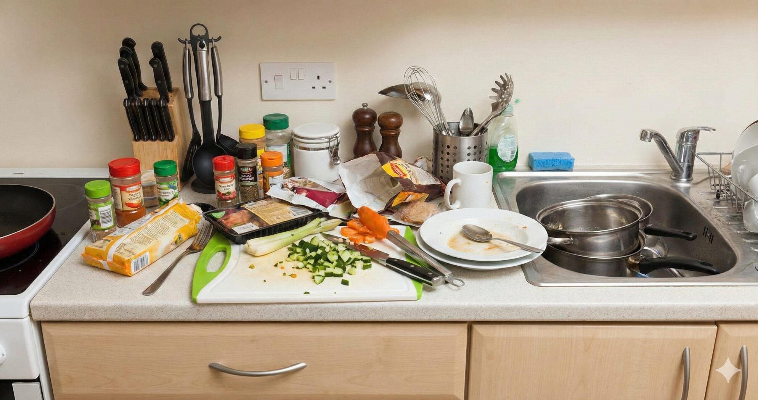 キッチンは家の中でも特に散らかりやすい場所のひとつです。調理器具、食器、食材、調味料、家電——限られたスペースに多種多様なアイテムが集まるため、気を抜くとあっという間にカオス状態になってしまいます。朝は綺麗だったキッチンが、夕食後には作業台が見えなくなっているという経験は、多くの方が持っているのではないでしょうか。