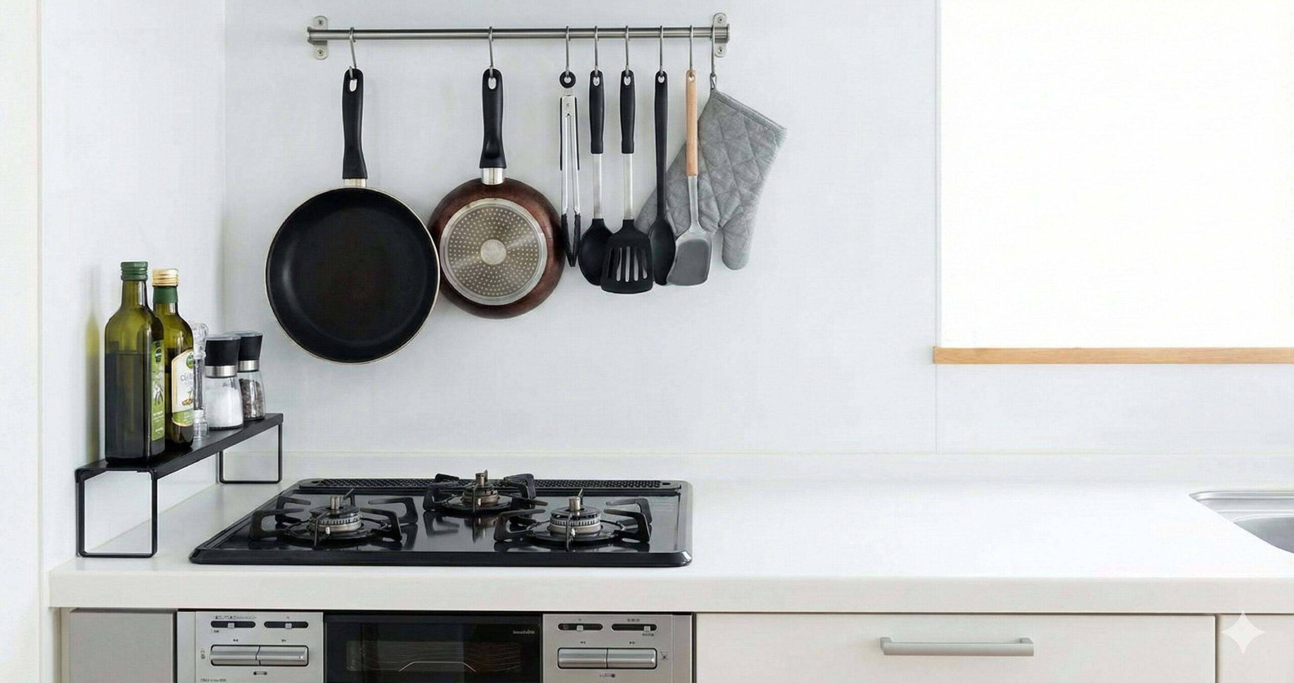 特に調理中は両手がふさがっていることが多く、遠くに戻しに行くのは現実的ではありません。使った場所からほんの一歩、手を伸ばせば戻せる距離に収納場所があると、自然と片付ける習慣が身につきます。これは「意志の力」ではなく「配置の力」で片付けを促す、非常に効果的な方法です。