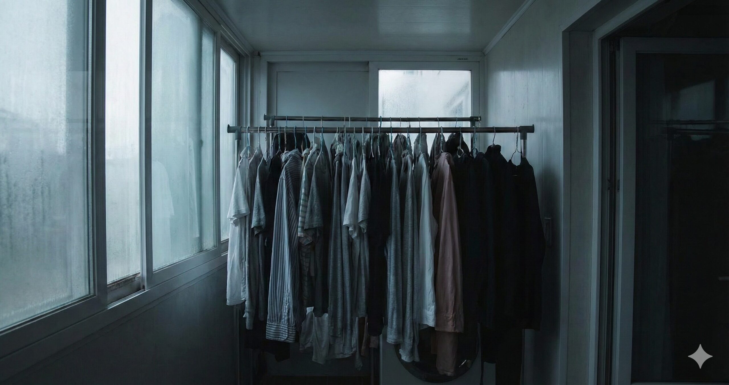 窓を開けていても、風が直接洗濯物に当たらなければ意味がありません。また、部屋の片隅に干していて、そこに空気の流れが届かないという場合も、同じように乾きが遅くなります。重要なのは、部屋全体の空気が動いているかどうかではなく、洗濯物に直接風が当たっているかどうかです。