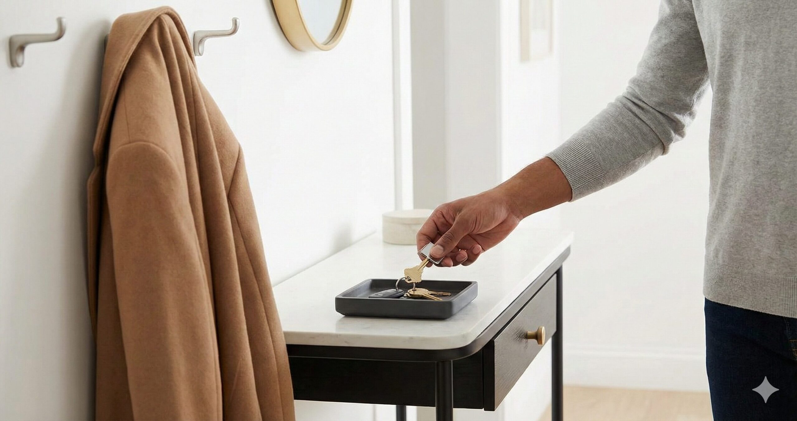 戻す場所を明確にしただけでは、まだ不十分です。せっかく整理した玄関も、日々の習慣が伴わなければ、すぐに元の散らかった状態に戻ってしまいます。ごちゃつきを防ぐには、毎日の小さな習慣を積み重ねることが不可欠です。特に効果的なのが、「家に入って1分以内」の行動を固定化することです。