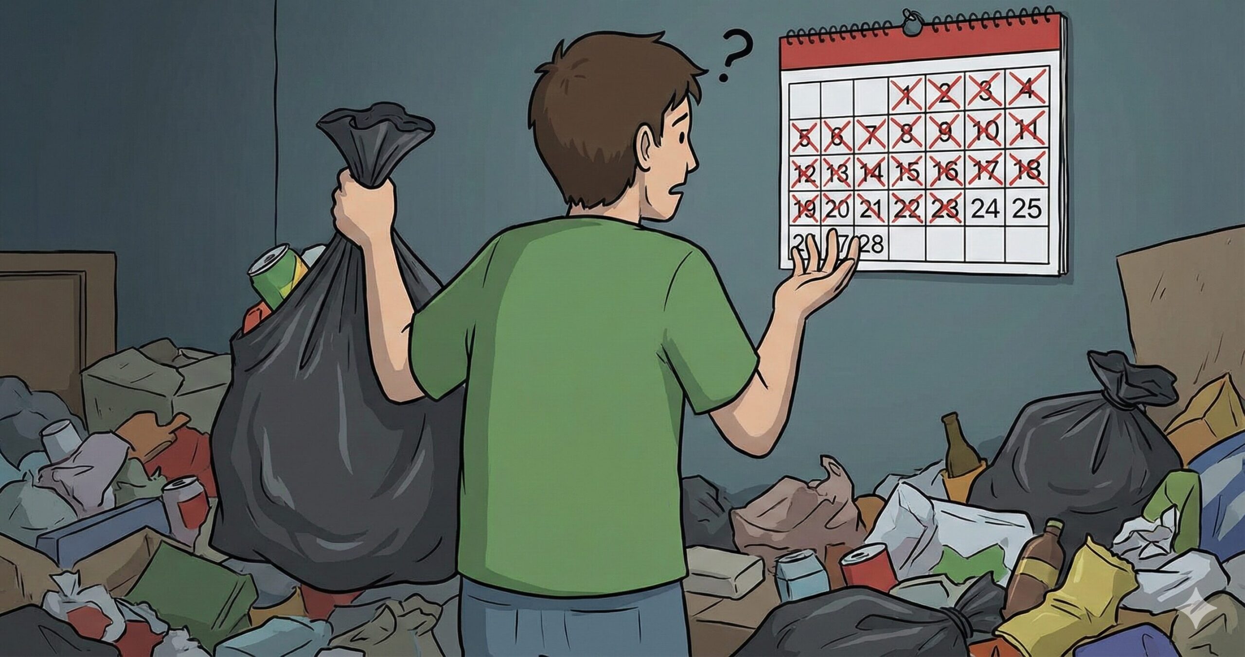 また、朝になって出し忘れに気づいた時の絶望感は、その日一日のパフォーマンスを低下させるほどです。この「締切に追われる感覚」こそが、ゴミ出しを憂うつにさせている第一の理由です。