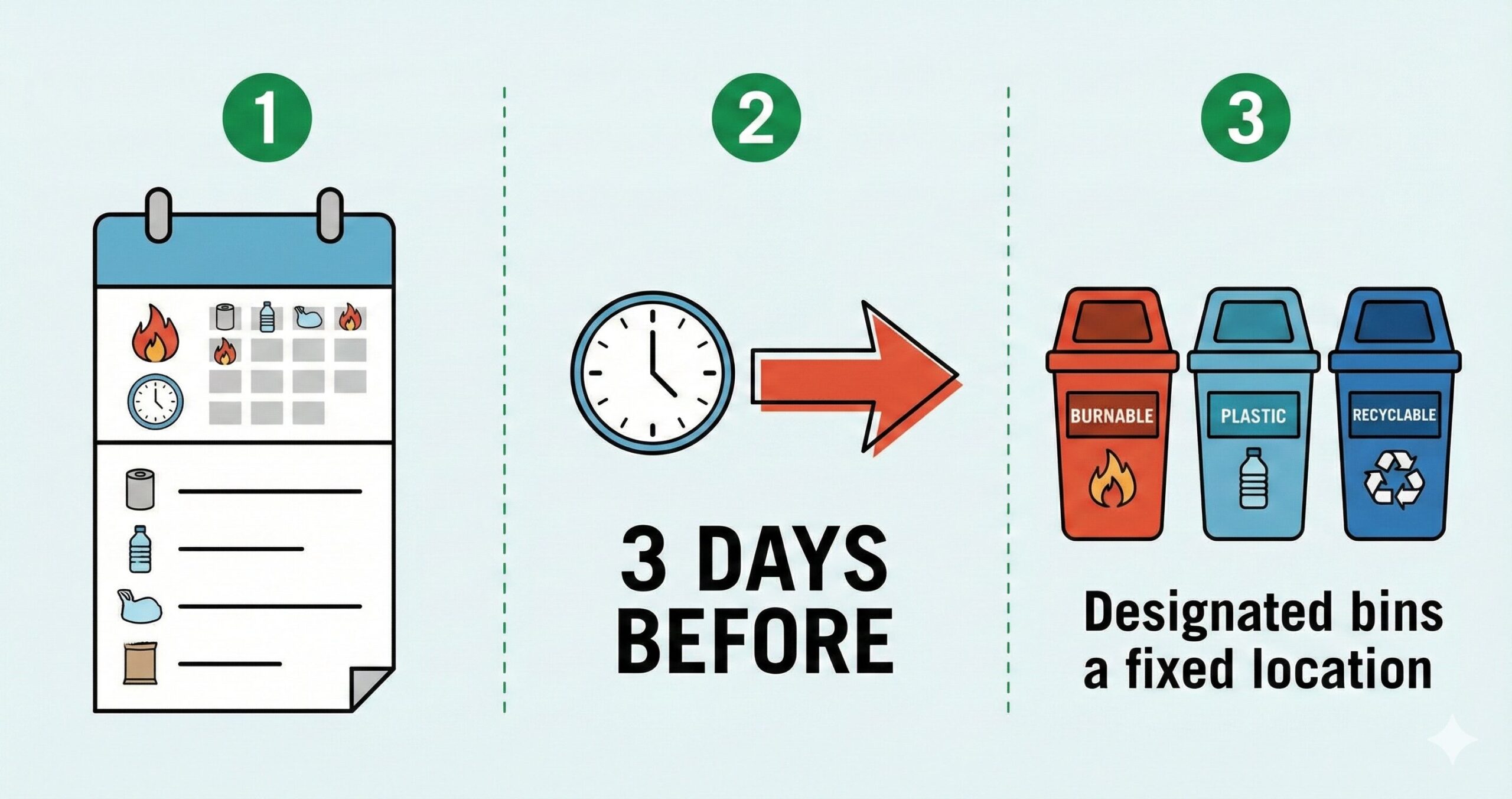 代わりに導入するのが、「3日前ルール(または分散回収ルール)」です。これは、回収日の前日に全てをやろうとせず、その数日前から段階的に準備を進めるメソッドです。