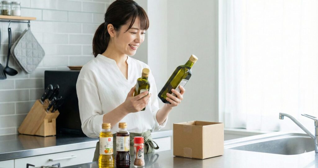 まずは、ほとんど使っていない調味料や、なくても困らない日用品から整理していきます。
