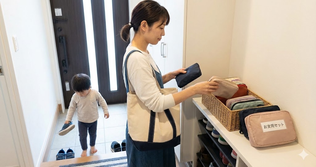 特に子どもがいる家庭では、この問題が顕著です。子どもの着替え、おむつ、おやつ、おもちゃ——外出時に持っていった物を、帰宅後にバッグから出して、洗濯したり、補充したりします。しかし、その後バッグに戻すのを忘れ、次の外出時に「あれがない!」と慌てることになります。使ったら戻す、という単純なルールが守られないことで、毎回一から準備する羽目になるのです。