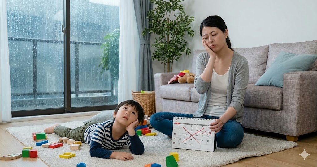 雨の日がつらいのは、決して天気のせいだけではありません。実は、「雨の日の過ごし方」に明確なパターンがないことが、ストレスを増幅させています。毎回その場しのぎで「何をしようか」と考え、子どもの「つまらない」に対応し続けると、親の精神的な疲労は限界に達します。また、子ども自身も、退屈で刺激のない一日を過ごすことで、ストレスを溜め込んでしまいます。
